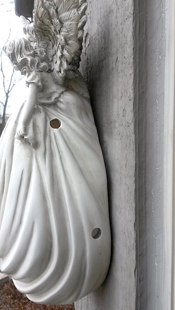 Graceful angelic birdhouse offers feathered friends a safe and cozy place to nest and raise their families with stunning style.