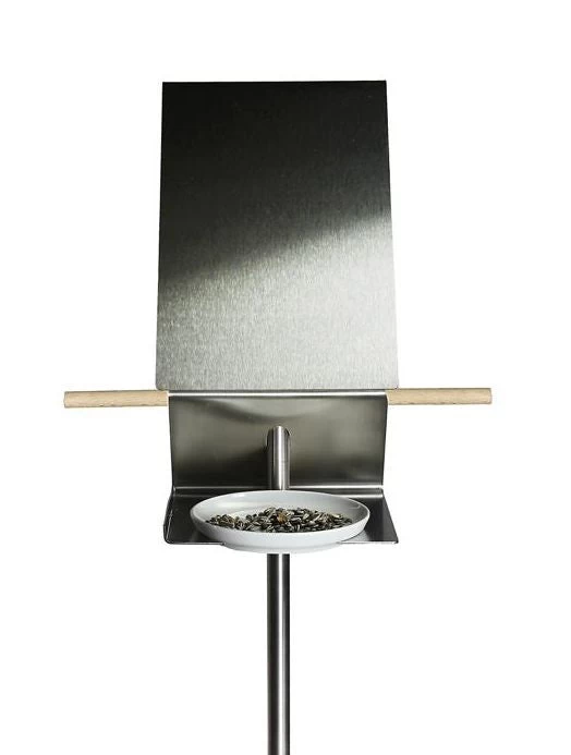 Contemporary staked bird bath offers options for fresh water and/or treats. Designed and crafted in Germany, European songbirds already approve the sleek design… yours will too!
