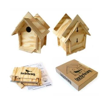 Innovative birdhouse kit is fun to assemble, and totally functional. Box For Birds wooden bird house kits provide real nesting sites and swell roosting spots too! Unlike the original Box for the Birds, this modern design is based on the famous Frank Lloyd Wright House. With it’s clean lines and tiered roof, this cool birdhouse kit compliments any setting with it’s simplicity.