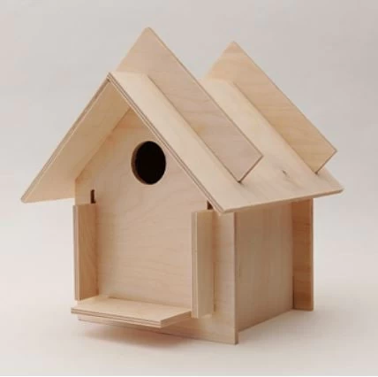 Innovative bird house kit requires no tools or glue, and comes with easy assembly instructions… sliding pieces of sturdy birch plywood that fit together in a snap! These substantial birdhouse kits may be painted, stained, or left natural to weather over time. Super fun birdhouse kit project for kids and adults alike!
