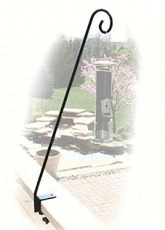 Sturdy Deck Hook with a more upright than outward position, reach from deck is just 10 inches. Allows for better viewing of smaller hanging feeders or birdbaths from inside the home.