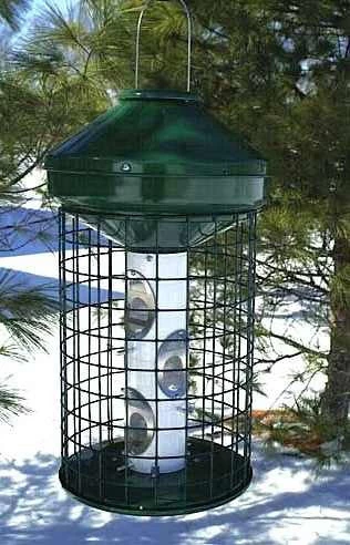 Caged Squirrel Poof Bird Feeder keeps seed away from pesky critters!