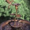 Flamed steel with copper look, tall bath accommodates a heater in winter or warm weather bath accessories to keep water moving. Solar fountains, bubblers, water wigglers or birdbath drippers keep water from becoming stagnant and keep birds coming back for more!