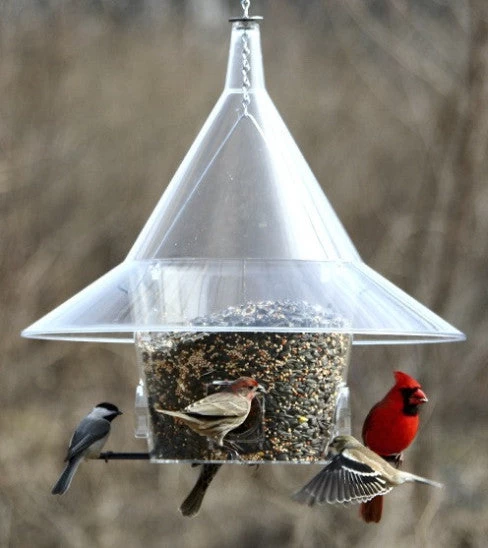 Squirrel Proof Bird Feeder features 17-inch dome and large seed capacity with new arched ports.