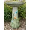 Stoneware bird bath features textured edges for little birdie feet to land and perch easily. High fired stoneware is safe for year round use, rich contrasting color will never fade. May also be used as a feeder in sheltered areas during cold winter months.