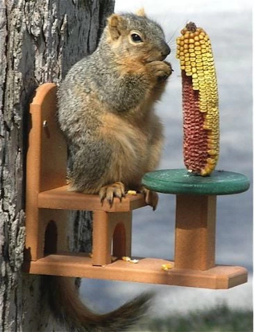 A fun design in new recycled plastic, this poly lumber squirrel feeder features a table and chair where squirrels can actually sit and eat corn from the table. Super fun squirrel feeder is for year-round use, and is guaranteed to never crack, split or fade. Squirrel feeders will also help deter squirrels form your bird feeders, saving seed and money.