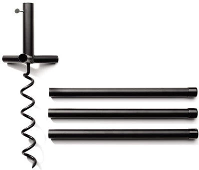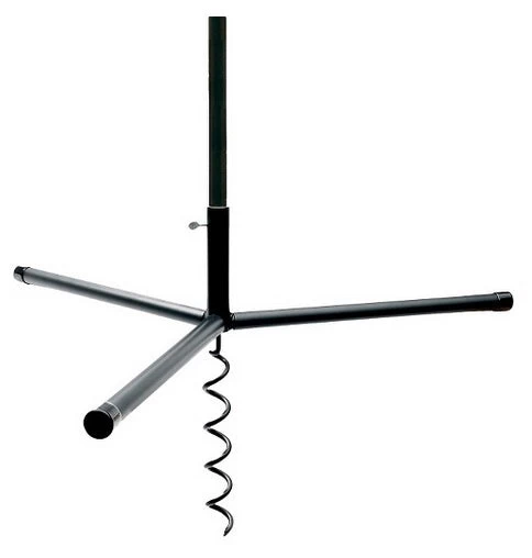 Simply attach the three handles (shown) to the base of the auger, and turn as the sturdy coil anchors into the ground. Place any standard 1-inch diameter pole over the base of the Ultimate Auger. Thumbscrew for added stability. This system allows you to move the Ultimate Pole Auger effortlessly.